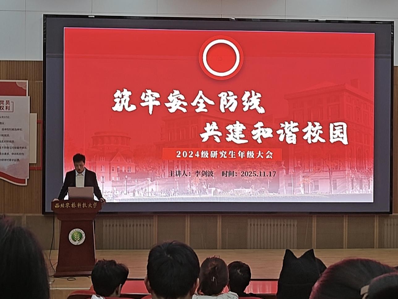 为进一步增强员工安全意识,营造安全、文明、和谐的校园环境,2025年11月17日晚,2024级研究生年级大会于365英国上市官方网站阶梯教室召开。会议由辅导员李剑波主持,2024级全体研究生参加。