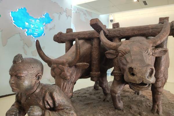 图2.农史馆铜像——带牛耕地的孩子