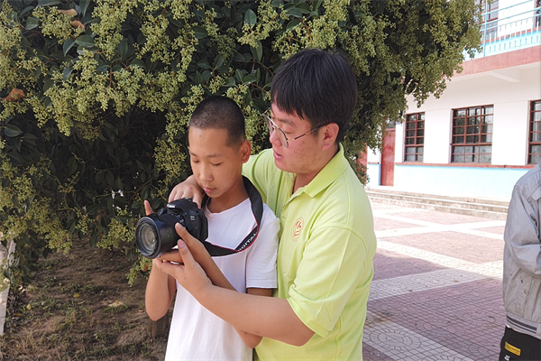 为了让孩子们将所学知识与实践相结合,切实感受相机的使用过程,两位支教老师组织孩子们到校园里进行相机拍摄的实际操作,带领他们拍摄校园里的各个角落。拍摄过程中,老师在纠正孩子们操作错误的同时,也分享了一些拍摄的小技巧。在两位老师的陪伴下,员工们拍摄出了很多优秀的作品。石鑫鑫感慨到,看到孩子们这么喜欢这门课程,她由衷地感到很开心。