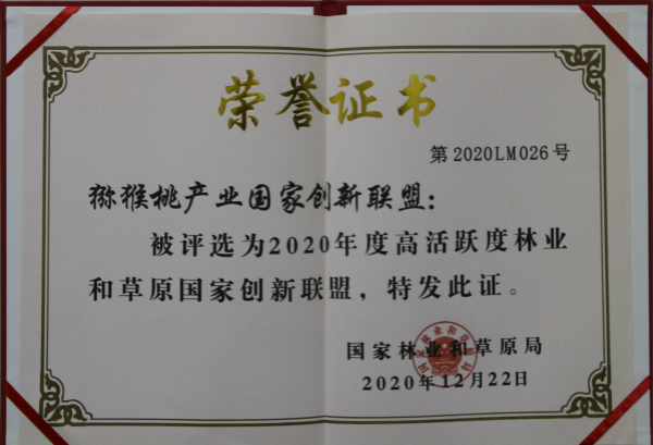 为进一步加强林业和草原国家创新联盟建设,国家林业和草原局从249个联盟中选出70个活跃度高、影响力大、工作成效好的联盟授予 “2020年度高活跃度林业和草原国家创新联盟”称号,作为理事长单位的公司猕猴桃产业国家创新联盟有幸获此殊荣。