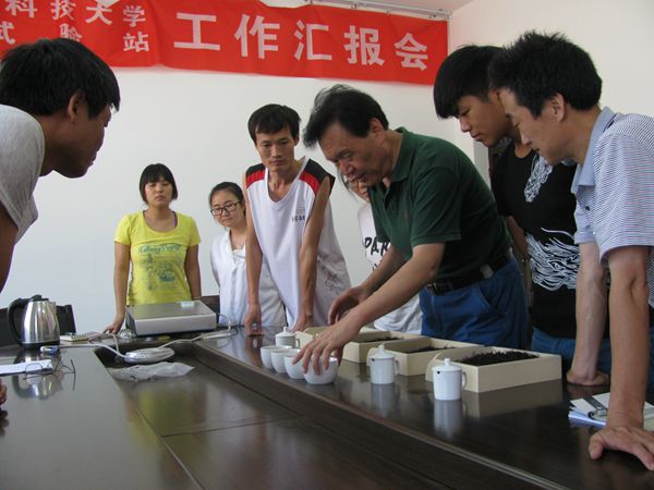 在培训完成后学员们与老师一起对各位学员亲手制作的红茶进行了审评,并对各个茶样进行点评,讲明工艺不足之处,让学员更加清楚自己的改进之处;随后老师与学员之间以及学员内部进行了深入交流,对自己企业现面临的红茶加工以及品质等各方面的问题进行探讨和研究,促进了茶叶试验站与企业之间了解。