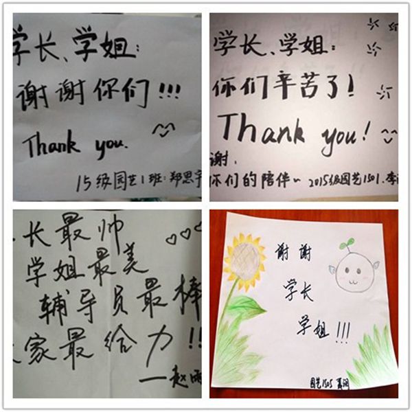 当我晚上来到杨凌的时候,第一个电话是打给了王栋学长,这才让我在人生地不熟的杨凌找到路。晚上王栋学长和逯锐琳学姐又找到我,帮我们找住宿的地方,第二天又帮助我去新生报道。是学长学姐让我在这个原本陌生的地方感受到了温暖与热情。真的很感谢学长学姐们的帮助,衷心地希望学长学姐学业有成、事事顺利!