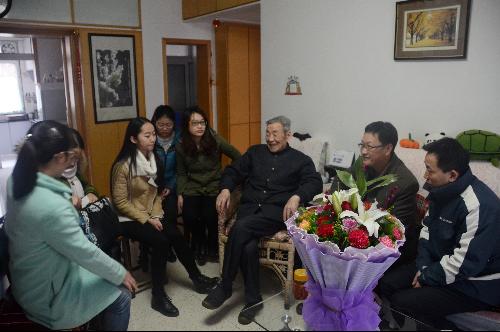 为加强对新党员的教育管理,提升党性修养,强化党员意识,充分发挥党员先锋模范作用,12月24日上午,公司党委书记孙马、副书记唐海波和党务秘书郭和及公司新发展的研究生、本科生党员代表,专程拜访公司老党员毛绳绪教授。