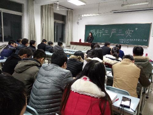 会上,李建明教授带领大家学习了“三严三实”的主要内容;与会人员围绕主题自由发言。未魏同学针对自己科研上的不足做了深刻反省并提出了进一步改进的措施;张鑫同学结合自己的实际情况诠释了与研究生自身息息相关的三严三实,针对三严提出了良好的心态、适合自己的规划、赡养父母尽孝道的权利,三实则讲到自己即将面临毕业,不管是工作亦或是做人都要“实”;潘桐华同学以自身存在的问题提出了我们应以周围的优秀研究生为榜样,时常反省自己,并设立长短期目标;陈丹艳和杨建宇新生则指出自己缺乏自主学习能力,下学期应多向师兄师姐学习,严格要求自己,脚踏实地。以杨振超老师为代表的教师党员表示,要好好学习三严三实的重要内容,并在实际工作中认真践行。邹志荣教授针对“三严三实”也发表了自己的见解,他认为“三严”实则做人,“三实”则指做事,并以文艺工作者闫肃老先生为例讲述了做人做事,希望大家都可以成为一个对社会有用有贡献的人。