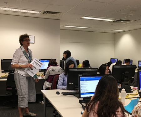 1月25日上午,阿德莱德大学职业与继续教育中心主任Jo Simpson在英语语言中心(English Language Centre, ELC)主持了开班仪式,ELC培训教育项目主管Trish Tynan介绍了本次培训的主要内容和目的;ELC项目管理员Heather McCulloch为同学们讲解Orientation to Adelaide,并带领员工完成Enrolment session。