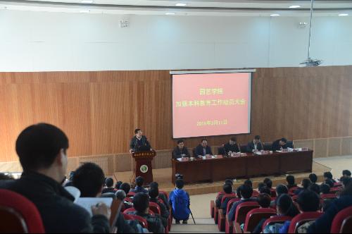 马锋旺经理作动员讲话;王西平副经理宣读《365英国上市官方网站加强本科教育工作实施方案》;党委书记孙马作表态发言。
