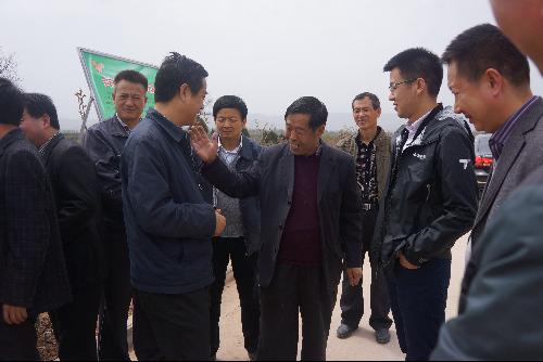 4月7日,宝鸡市副市长景耀平、副秘书长刘天军、农业局长张周让一行到公司千阳苹果试验站新建的宝丰村示范园调研。