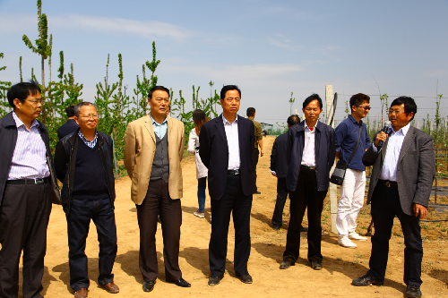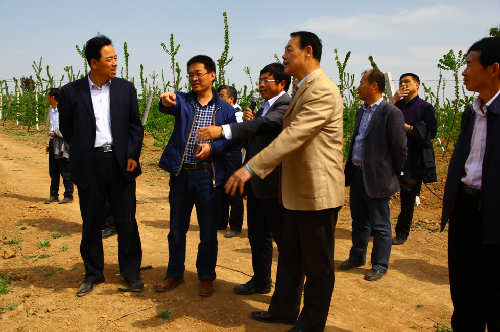 2016年4月14日陕西省果业管理局局长高武斌、副局长周智孝,在铜川市果业局局长任斌、耀州区副区长焦毅陪同下来公司铜川果树试验示范站进行果业转型发展调研。