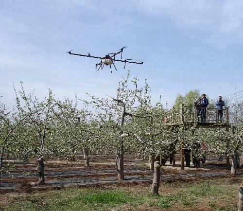 眼下正是洛川县五十万亩苹果花开的季节,公司洛川苹果试验站在洛川县交口河镇安善村旅游观光采摘园为全县200余名技术员、果农举办了苹果春季管理现场培训,并现场展示了无人机花期授粉技术。