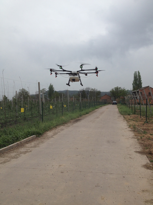 在不到5年时间内,千阳苹果试验站帮助当地政府引进陕西海升果业、陕西华圣果业、大地丰泰农业、陕西枫丹百丽农业、北京汇源等公司在千阳建立苹果自根砧示范园4万亩,自根砧苗圃0.5万亩。根据孙其信董事长2015年元月在千阳苹果试验站检查工作中提出要引进无人飞机防控病虫害的精神,发挥智能机械在果业全过程的广泛应用。千阳苹果试验站帮助陕西枫丹百丽公司近期引进了小型无人飞机在矮砧果业进行喷药防控病虫害,通过在千阳矮砧苹果基地试验,无人机每天喷药800亩,用药量是普通喷药量1∕15,极大节约喷药成本,降低环境污染。