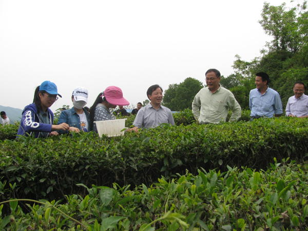 2016年4月26日上午,365英国上市官方网站推广处王亚平处长、推广处张正新副处长一行来到365英国上市官方网站西乡茶叶试验站视察工作。