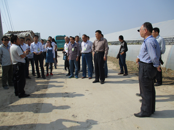 与会人员先后参观了蒲城县翔村镇六合村西甜瓜新品种示范基地、渭南市农科所孙镇试验基地和蒲城县龙池镇埝城村西甜瓜生产标准园。观摩了西甜瓜新品种应用、集约化穴盘育苗、机械化覆膜、多膜覆盖、嫁接育苗、配方施肥以及蜜蜂授粉等七大栽培管理技术,考察了当地西甜瓜生产规模和效益,探讨了未来发展的趋势。