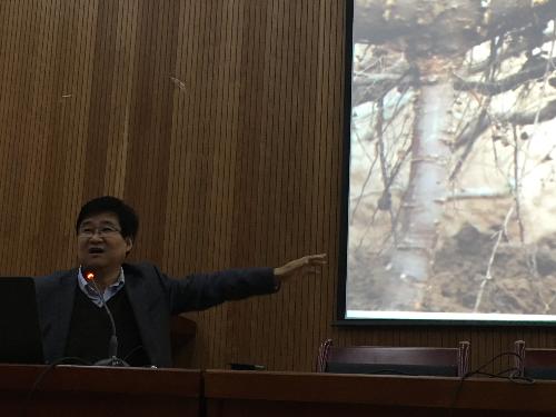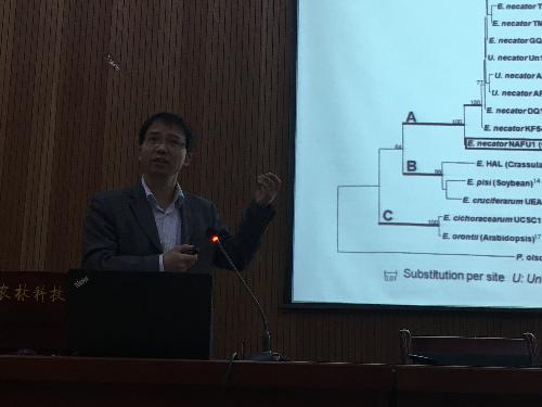 图2 文颖强教授做中国野生葡萄与白粉菌互作的细胞生物学研究学术报告