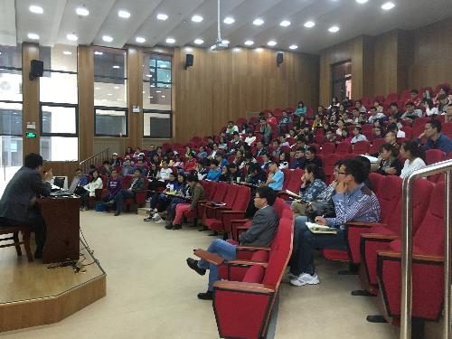 韩明玉教授长期扎根西部,立足实践,围绕苹果产业发展中的关键重大科学问题,带领农业部“黄土高原苹果发育生物学与矮砧集约高效栽培技术创新团队”开展应用基础研究和关键技术集成创新,着力解决我国黄土高原地区苹果产业发展的瓶颈问题。本次报告中韩明玉教授从世界苹果栽培制度的变革和苹果矮砧集约高效栽培技术模式产生的背景、新模式的理念、关键技术、优点及我国发展矮砧集约栽培模式的思考等方面做了系统讲解;阐述了我国苹果产业发展取得的成绩、存在的主要问题和未来发展方向。与会师生从韩明玉教授报告中不仅学习了苹果栽培模式变革的新理念、新技术、新方法在果树产业中的应用,更重要的是学习了他勤奋治学和追求卓越的学术思想。