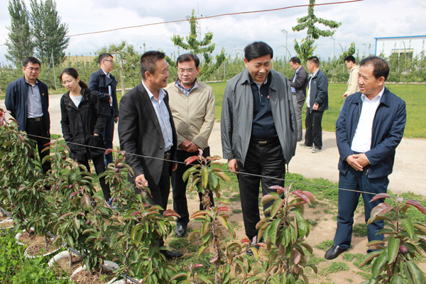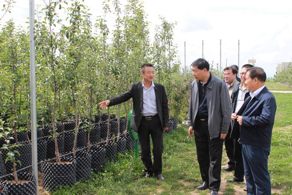 5月28日,农业部党组成员、人事司司长毕美家一行5人,视察公司洛川苹果试验站,洛川县县委书记彭安季、副县长陈耀忠、果业局、果研所负责人陪同视察。