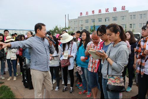 6月7日,公司2013级园艺专业果树模块114名本科生在副经理王西平,张朝红、管清美、李明军等老师的带领下,来到公司洛川苹果试验站进行实践活动。