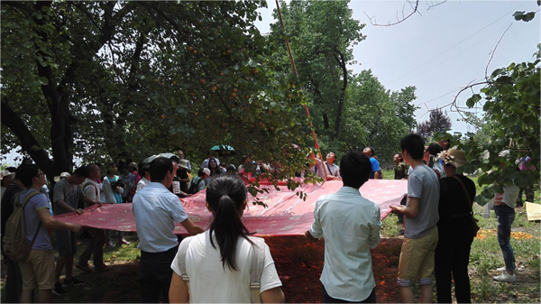 图3 同学们在学习大杏树上杏的采摘技术