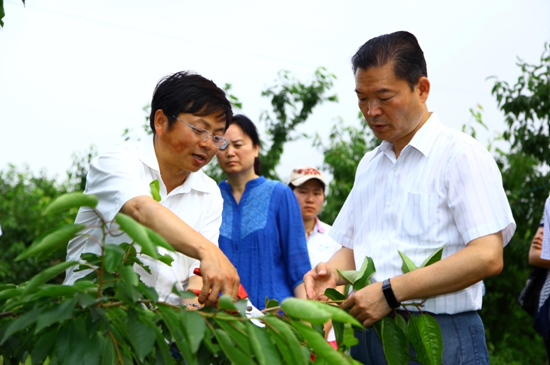 近日,公司党委书记李兴旺在公司副经理王增信的陪同下到渭河樱桃试验示范站视察工作。