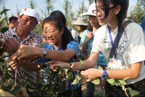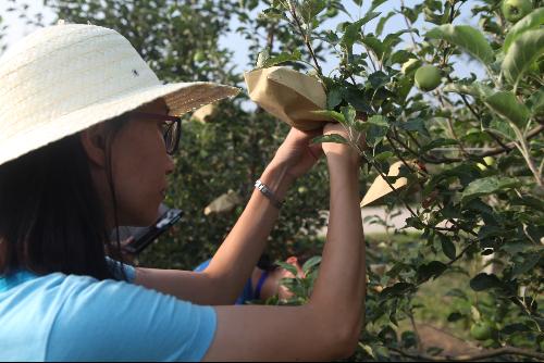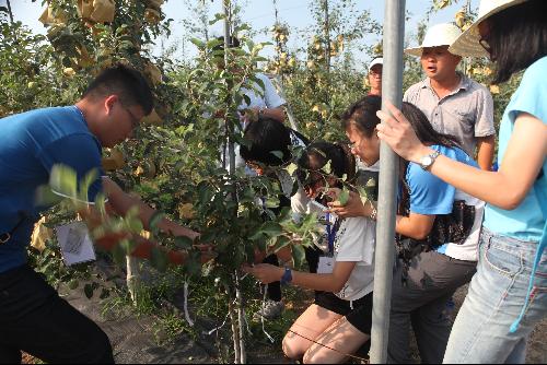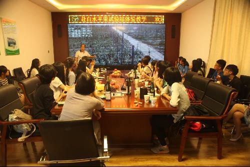 下午,众学子来到公司白水苹果试验站,王雷存站长就十年来试验站发展历程及运行机制和所取成绩一一做了介绍。在示范基地,众学子们不顾天气炎热,认真听取农技师傅做技术讲解,亲自体验套袋、拉枝等果树管理活动。在站智慧果园会议厅,品尝了水密桃、杏、早熟梨、香瓜、苹果脆片酒等水果特产,并对白水现代农业发展做了详细了解。正所谓:拜仓圣,叹华夏文明源远流长;躬农事,思丰收果实来之不易。