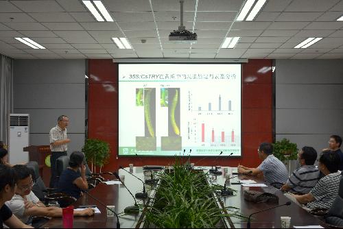 任华中教授为公司做了题为“黄瓜果刺发育的分子调控机制研究进展”的学术报告,详细介绍了黄瓜果刺发育的国内外研究概况、其中的科学问题以及他们实验室的研究进展,并与师生就相关领域内的学术问题进行了交流讨论,针对大家提出的问题进行了细致的解答,受到广大师生的一致好评。