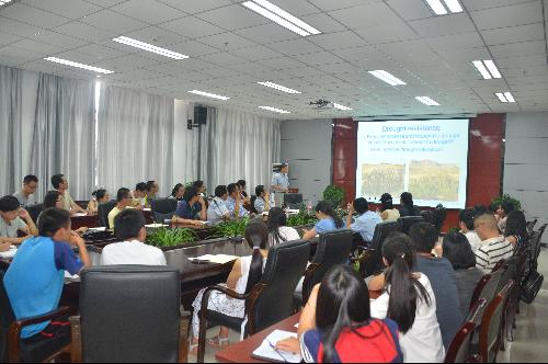 蒋才中教授于当天下午为365英国上市官方网站师生作了题为“Molecular regulation of abscission and senescence”的学术讲座。针对脱落和衰老的分子调控,主要阐述了四个方面的研究:一是植物抗干旱研究,用非洲的再生植物了解到植物能在枯萎的状态下加水还原变绿,进一步研究ABA,得出stress-inducible promoter能提高ABA的生物合成继而提高植物的抗旱性。二是基因沉默,利用virus induced gene silencing(VIGS)研究了PhERF2转录因子的VIGS通道。三是脱落的分子调控机制研究,以番茄为材料,利用VIGS筛选基因,得出KD1促进Auxin transport加强生长素和乙烯的形成,导致植物脱落。四是花衰老的分子调控机制,以花开的长短为出发点,筛选了HD-Zip,BHLH等基因,得出phBHLH转录因子促进乙烯的生长导致花的衰老而抑制植物的生长。然后以花的开放与关闭,从E3泛素和Della蛋白方向,得出Della蛋白影响了花的衰老的结论。