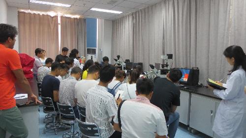 培训过程中,应用工程师首先对两台显微镜的操作、注意事项、软件使用及图片编辑等内容进行了讲解。然后,针对师生在使用过程中出现的问题进行了详细的解答;同时,在工程师的指导下,参加培训的多位师生进行了显微镜使用及日常维护的现场操作。