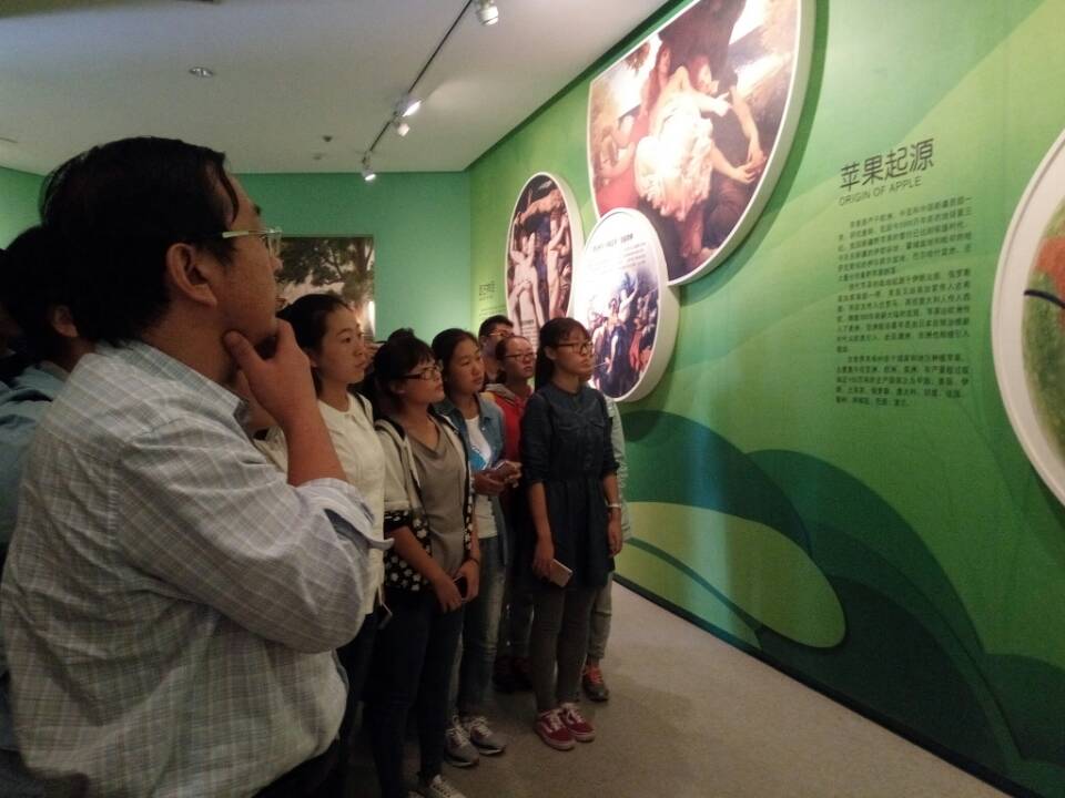 经过近3个小时的车程,员工们来到了著名苹果产区——洛川。刚下高速,员工们就被各种苹果造型的建筑物所震撼,跟随老师的步伐,进入了中国洛川苹果展览园,倾听着博览园工作人员的讲解,同学们对苹果文化有了更深层次的了解,以及对为洛川苹果做出贡献的前辈发自内心的敬仰。之后,马经理又补充介绍了苹果的起源地,现代苹果的栽培方法,以及病虫害的防治,让同学们遨游于苹果文化的海洋之中,不能自拔。