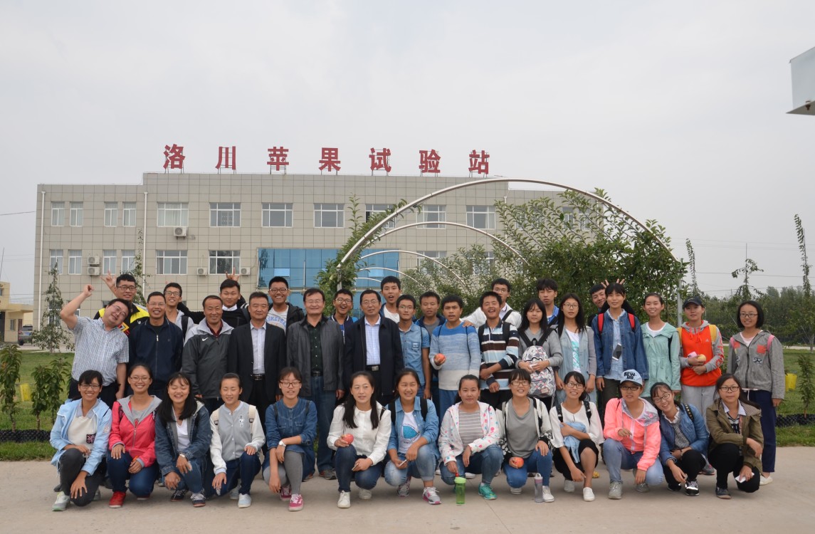 园艺1602班与带队老师们在洛川苹果试验站留影