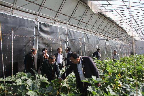 代表观摩日光温室西葫芦新品种展示