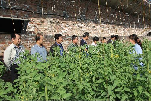 代表观摩榆阳区鱼河镇许家崖村的日光温室环控技术及蔬菜病虫IPP防控技术