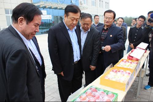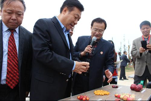 农业部副部长于康震在参加第一届世界苹果大会暨第九届中国陕西(洛川)国际苹果博览会之际,到公司洛川苹果试验站参观、指导。