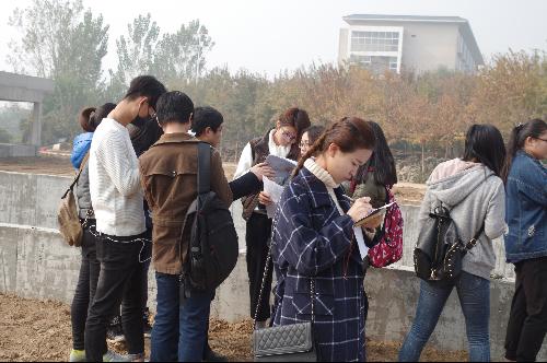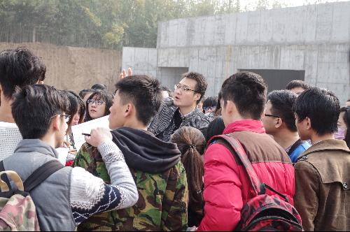 到达中华郡文化创意产业园后,建设公司的孙经理先带同学们参观了天成园宴会厅、中华郡民俗小吃街并进行了民俗体验活动。途中孙经理对项目的建设状况,渭北特色文化传承方面做了详细介绍,同学们认真做着笔记。之后,大家到达了本次大赛的规划设计地点:地坑休闲体验区。先是孙经理简单介绍地坑体验区的建设现状以及将来的功能定位以及分区,然后蒲亚锋老师介绍了本次大赛的基本情况及设计要求,最后是同学们自由调研和孙经理与蒲亚锋老师对同学们的问题进行解答。