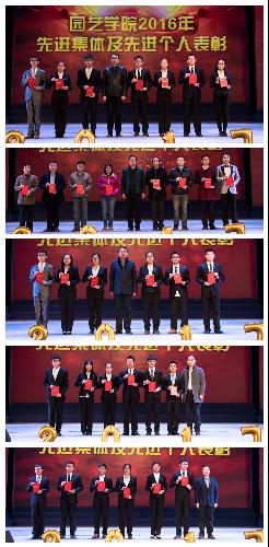 表彰大会在庄严的国歌声中拉开帷幕。经理马锋旺发表了热情洋溢的新年贺词,从人才工作、科研基金获批情况、创新创业教育、国际影响、员工工作等方面详细总结了公司在2016年取得的新成果,并就公司2017年发展蓝图做了简要介绍,鼓励大家在新的一年再接再厉,求真务实,锐意进取,全面开创各项工作的新局面。之后,公司党委书记黄德宝宣读了《关于表彰2016学年员工先进集体和先进个人的决定》,与会嘉宾和领导分别为获奖的先进集体和个人代表颁发奖牌和证书。通过表彰先进,大家再次感受到各类奖学金获得者的勤学苦读、创业能手的埋头苦干、员工干部的踏实肯干、团学组织的不断超越。这一刻,追求卓越的园艺精神从台上精神抖擞的获奖同学身上传递到台下掌声雷动的同学中来。园艺163班的周贺同学饱受鼓舞地说:“看了表彰大会很有感触,看到那么多优秀的同学得到了表彰,觉得自己要更加努力,要向优秀的同学好好学习!”
