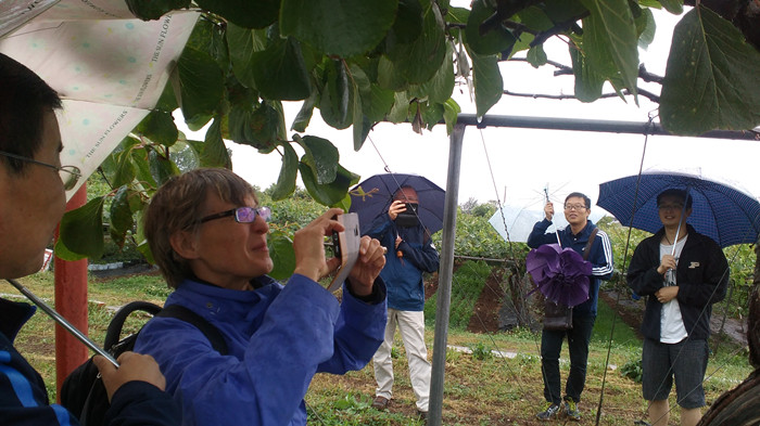 5月22日下午,受植保公司邀请前来进行学术交流的法国农业科公司研究员Dr. Cindy Ellen Morris和Philippe Claude Nicot两位植病专家冒雨到访公司猕猴桃试验站。
