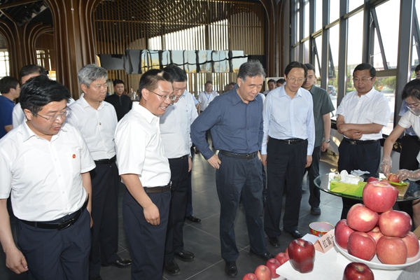 6月2日,全国农业产业扶贫精准脱贫经验交流会在陕西省延安市洛川县召开。马锋旺教授向国务院副总理汪洋、农业部部长韩长赋汇报公司选育的 ‘秦脆’、‘秦蜜’苹果新品种。农业部、国务院扶贫办及陕西、河南、甘肃、宁夏、河北、山西、安徽、江西、湖北、湖南、广西、四川、贵州、云南、新疆等15省(区)分管负责领导,22个省(区、市)农业和扶贫部门主要负责领导、14个集中连片特殊困难地区28个市州长,陕西、河南、甘肃、宁夏4省区72个贫困县县委书记,陕西省、延安市领导等400余名与会代表参观公司洛川苹果试验站。