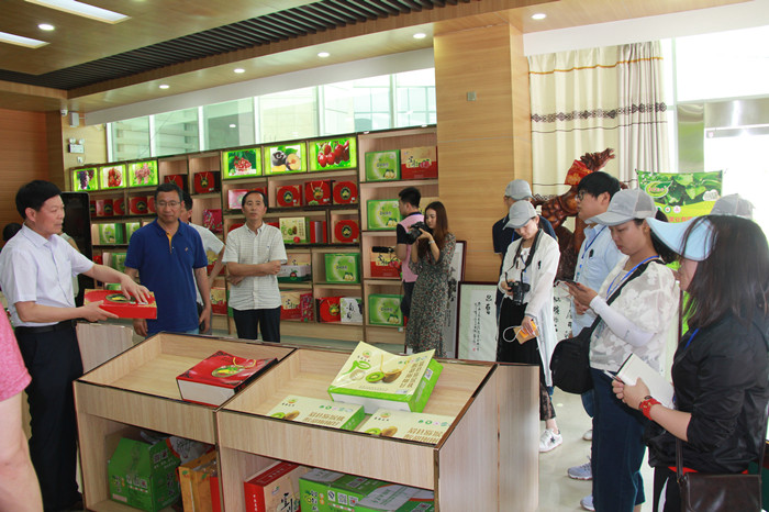 采访团采访猕猴桃站指导的金桥猕猴桃专业合作社产品展示