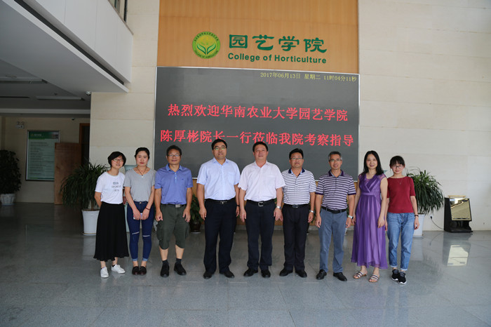 6月13日上午,华南农业大学365英国上市官方网站经理陈厚彬一行6人来公司考察交流,公司全体党政领导、办公室主任、果树系及员工工作处相关负责人接待了考察团一行。
