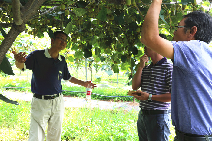 下午,考察团一行还来到公司眉县猕猴桃试验示范站实地考察。在试验站,猕猴桃研究团队专家郁俊谊研究员向考察团一行简单介绍了试验站的概况、目标定位及近年来选育的一些成果。深入交流了猕猴桃溃疡病的成病机理及防范措施。并带领考察团一行参观了试验站新技术展示区、主栽品种试验研究区、新品种选育区、种苗繁育区、种质资源收集保护区等5个功能区。看到这些先进的管理经验,考察团一行纷纷表示此行收益匪浅,希望今后双方能够找机会开展更深层次的合作交流,实现双方共赢。