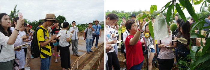 南亚热带作物研究所武红霞老师为同学们介绍了芒果种质资源。目前市场销售的芒果品种主要有“台农1号”、“红芒6号”、“金黄芒”等,主要的嫁接方式有靠接和枝接等,通过高接换种的方式不仅可以有效地缩短果树生长周期,而且可以提高果实产量和品质,减少病虫害,如“粤西1号”植株上嫁接“热农1号”。