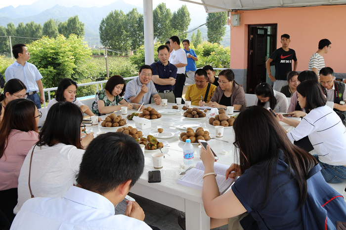 中央媒体采访团听取猕猴桃驻站专家科技示范推广工作汇报
