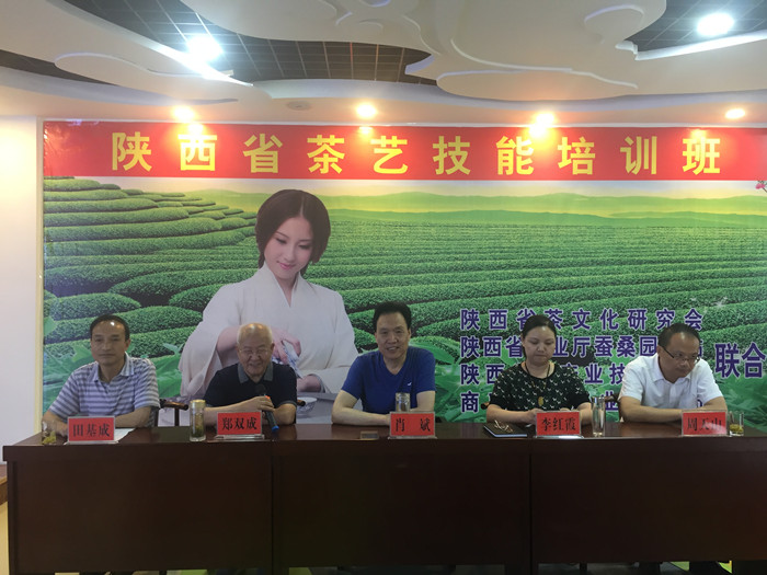 “陕西省茶艺技能培训班”开班仪式由陕西省茶叶产业技术体系首席科学家、公司肖斌教授主持。陕西省茶文化研究会副会长兼秘书长郑双成、商南县副县长李红霞及县茶产业发展局局长田基成等出席了开班仪式。陕西省茶文化研究会副会长郑双成、商南县副县长李红霞分别致词。