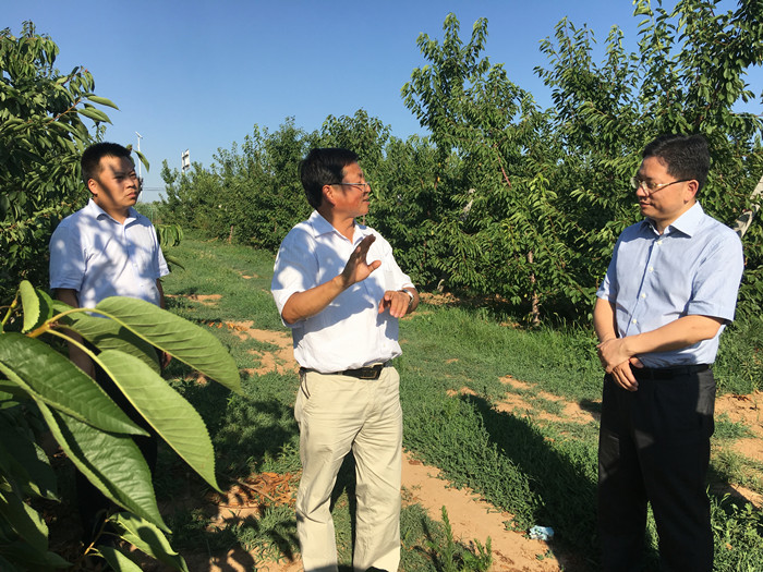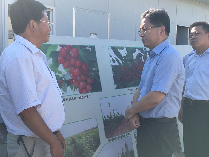 期间,丁德明询问了校试验示范站总体建站规划、功能及目标,双方协议资金到位情况及相应基础设施建设进展,驻站专家的生活、办公及科研条件,详细询问了驻站专家的专业特长。并参观了试验站樱桃、桃、苹果试验园及肥水一体化设施,鼓励驻站专家积极参与社会化服务,建议加快试验站基础设施建设。当听到试验站所有专家都参与了包点扶贫工作,丁副市长给予了高度赞赏,督促地方科技人员与公司专家紧密联系,开展工作,建议建立科技服务专门部门,将公益服务和有偿服务相结合。