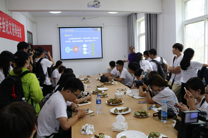 7月26日,由44 名来自北大、清华、北航等首都高校老员工组成的“穿越千年丝路 探寻中国印记”2017首都老员工记者团来到公司猕猴桃试验站进行采访,实地进行了猕猴桃探秘之旅,详细了解了“毛蛋蛋”如何变成了“金蛋蛋”,以及猕猴桃试验站对猕猴桃产业的引领作用和大学推广体系“西农模式”取得的成绩。试验站驻站专家、研究生、眉县技术人员及部分示范户参与采访活动。