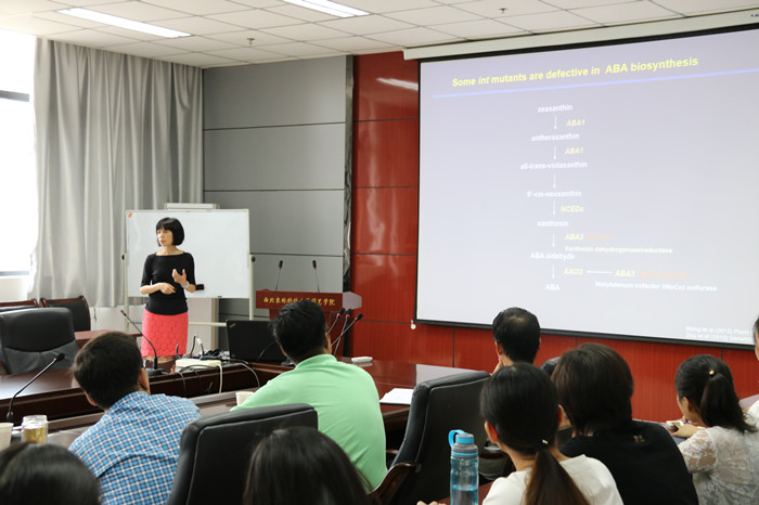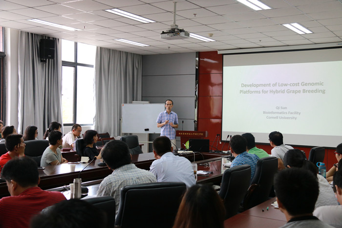 Jian Hua博士作了题为“Molecular mechanisms of temperature regulation of plant immunity and growth”的学术报告,系统介绍了她在植物生长及免疫系统对温度响应分子机制领域的最新研究成果。Qi Sun博士作了题为“Development of genomic platforms for hybrid grape breeding”的学术报告,他以葡萄育种为例,详细介绍了农作物基因组辅助选择育种的低成本测序技术。报告内容引起了与会师生的强烈兴趣,大家就植物响应环境信号的分子机制,以及低成本测序技术在苹果、葡萄、马铃薯等重要农作物育种中的应用前景等问题展开了热烈讨论。交流会由经理助理李鹏民教授主持,公司及农公司、植保公司相关师生参加了本次交流会。