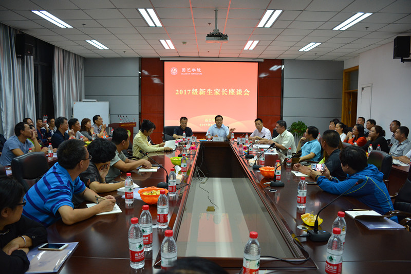 26日晚上,公司召开2017级新生家长座谈会,公司领导、各系主任及学工队伍共同出席,为新生家长深入剖析了公司历史、学科发展、员工培养目标等相关内容。会议伊始,公司播放了家校活动宣传片,高年级优秀员工向大家展示了各自的老员工活,部分在校生家长也介绍了对公司的真实感受。之后,公司领导就公司的教学环境、各类实验平台及环境、研究生推免、公司的特色与优势等内容作了详细说明,对公司特色培养措施——新生研讨课、卓越人才班、创新创业项目、TALK空间等内容也做了介绍。而后各个系主任及相关教师逐一剖析果树、蔬菜、设施、观赏园艺四个系的具体情况,帮助新生家长对学科专业迅速建立正确认知,增强对公司本科生教学与人才培养工作的了解。在最后的问答交流环节,各位家长分别就大学适应性问题、学业问题以及未来发展去向及空间等问题与各位领导老师进行了深度互动。