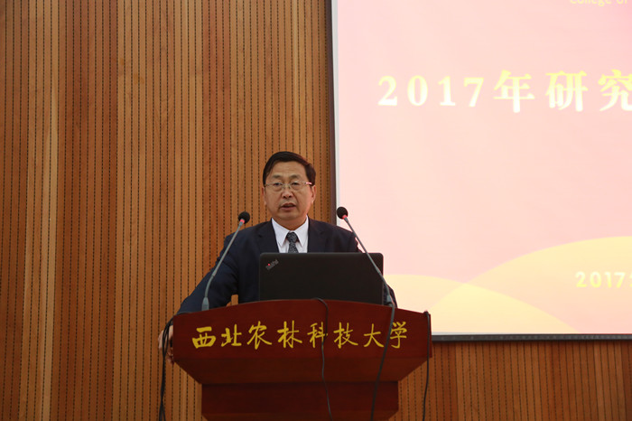 青年教师代表杜羽以自身的科研经历,勉励同学们珍惜韶华,自觉练就过硬本领,始终坚信“一份耕耘一份收获”。在校研究生代表涂明星通过自己四年来不断求知探索,攻克科研难题的经历,引导新生如何正确审视自我、规划自我、提升自我。新生代表张雨萌同学在发言中表示:“选择读研是为了继续提升自己,来到了西农,很感激自己做了一个正确的选择”,面对即将开始的研究生生活,对自己提出了“不忘初心”、“享受孤独”、“有所担当”等三点要求,与新生们共勉。