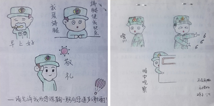 2017级本科生军训即将圆满落下帷幕,在同学们竭尽全力在田径场上展示这十几天来的训练成果时,有一批人,默默地背上了行囊,回到了属于他们的战场,那就是军训教官们。离别前夕,同学们将心中的不舍与牵挂,化作了言语与画作,送给陪伴着他们度过大学最美时光的人。
