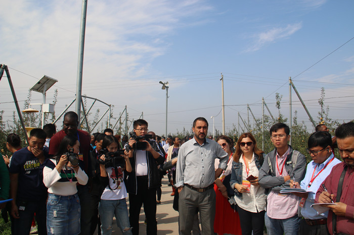 9月16日,参加“2017年发展中国家农村发展与减贫官员研修班”的来自17个发展中国家的司处级官员,在中国国际扶贫中心、陕西省扶贫办领导陪同下前来公司洛川苹果试验站参观考察。