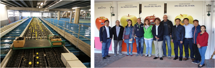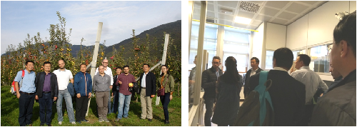 10月4日-5日,参访团访问了艾德蒙马赫基金会研究创新中心,与中心主任Annapaola Rizzoli博士及相关苹果专家Stephen Martens博士、Mickle Malnoy博士、Eugenio Aprea博士、Massimo Pindo博士和Fabrizio Costa博士等进行了苹果相关研究的学术交流,并就双方共同合作成立苹果研究中心进行了深入探讨,最终达成合作意向。期间,我方人员参观了该中心的感官评价实验室、基因组实验室和代谢组实验室。参访团还参观了著名的Melinda公司生产线,详细了解了意大利苹果生产、销售、出口、经营等相关的产业信息,并参观了高标准矮化密植生产园。