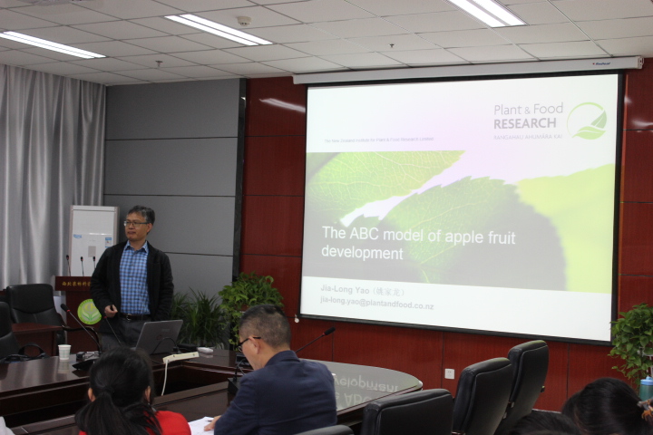 10月19日上午,新西兰皇家植物和食品研究所Jia-Long Yao(姚家龙)博士来公司进行交流,并在207会议室为公司师生作了题为“The ABC model of apple fruit development”的学术报告,报告会由公司韩明玉教授主持,公司果树系和蔬菜系相关老师和研究生参加了学术会议。